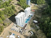 The apartments are in a complex consisting of two connected blocks, with a total of 180 apartments. The complex offers rich amenities such as open and closed pools, a water park, spa, Turkish bath, sauna, steam room, relaxation room, gym, cinema, restaurant, library, cafe-bar, mini-golf, tennis court, basketball and volleyball courts, children's play area, game room, mini-club, generator, free internet, TV satellite system, pergola and barbecue, parking, concierge, 24/7 security cameras, and security.