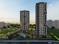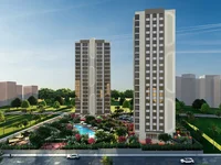 The project area is 7100 m², and the building has 18 floors. The residential complex has an outdoor swimming pool, indoor and outdoor parking areas, a fitness center, an outdoor kid playground, two barbecue and garden sitting areas, an elevator, a fire detector, a generator, natural gas, and a caretaker.