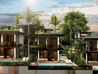 What is in the complex: The complex consists of 5 separate villas. On the territory with landscape design of each villa of 407 m2 there is an outdoor pool, built-in Jacuzzi with pool in the garden, Finnish sauna, hammam, fitness, laundry, garage for 2 cars, recreation area and barbecue.