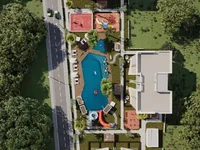 What's in the complex: On the closed area of 4510 m2 will be located three residential blocks for 68 apartments, outdoor and children's pools, water slides, playground, arbors for recreation, basketball court, outdoor simulators, covered parking.