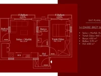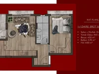 Inside: Apartments of the following layout are available for sale: 1+1 with an area of 50 m2; 2+1 with an area of 80 m2.