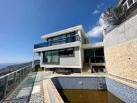 The villa features a spacious living room, an American-style kitchen, four bathrooms, and a large terrace and balcony, providing spectacular views of the surrounding sea, mountains, and town. The property also includes a private pool, sauna, Turkish bath, Jacuzzi, BBQ area, and private garden—perfect for entertaining or relaxing in style.