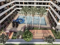 Built on a 6,450 sqm area, this complex consists of 3 blocks with a horizontal design, offering a range of premium amenities for residents, including swimming pools, an aquapark, a Turkish bath, sauna, basketball court, fitness center, and both indoor and outdoor parking areas. The complex also features a children's playground, generator, elevator, 24/7 security, and surveillance cameras, ensuring safety and comfort for all.