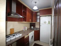 The front-facing flat has a separate kitchen and a bright, functional design. It is ready to move in and includes features such as a steel entrance door, shower cabin, central satellite system, LED and spot lighting, laminate and ceramic flooring, natural gas infrastructure, and central heating.
