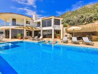 This detached house enjoys a unique location with stunning views of Kalkan Bay, Yılan Island, and Fare Island. It offers ideal comfort for large families and groups of friends.