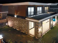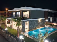 The villas have 250 m² gross and 220 m² net living space. They include a spacious living room, an open-plan kitchen, 5 bedrooms, 3 of which come with en-suite bathrooms, a master bedroom with a walk-in closet, an entrance hall, a shared bathroom, storage, a laundry room, a technical room, a Turkish bath, and 3 balconies. All materials used in the villas are selected and applied with superior craftsmanship and high-quality standards. Features include air-conditioning infrastructure, wooden and ceramic flooring, aluminum double-glazed windows, decorative wall paints, lacquered kitchen and bathroom cabinets, lacquered interior doors, and a secure steel entrance door.