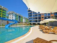 Two-bedroom apartment (2+1) 95 m2 in the Vega Style complex, view of the pool and infrastructure of the complex.