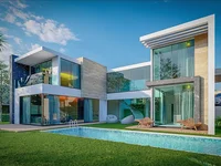 Detached garden villas feature amenities such as air conditioning, en-suite bathrooms, shower cabins, terraces, separate-plan kitchens, shutters, fireplaces, built-in kitchen sets, smart home systems, balconies, pantries, laundry rooms, dressing rooms, barbecues, storage rooms, steel doors, central satellite systems, and PVC window systems.