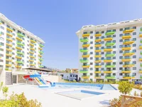 Konak Green Towers offers full resort-style amenities including indoor and outdoor swimming pools, aqua park, children’s pool, Turkish bath, sauna, and fitness center. Residents can also enjoy a cinema room, billiards, table tennis, and outdoor sports courts for tennis, basketball, and football. The complex provides Wi-Fi, generator, elevators, open and covered parking, 24/7 security with camera systems, and beautifully landscaped areas with gazebos and barbecue spaces. Thissea view flat in Avsallaris an ideal option for investment or holiday living.