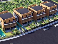 The villas, with a total usable area of 248 sqm, include 4 bedrooms, 2 living rooms 6 bathrooms, a dressing room, a utility room, underfloor heating, air conditioning infrastructure, a smart home system, smart shutters, and modern interior fittings.