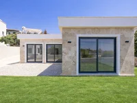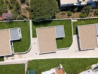 The project is situated on a 1,040 m² plot and consists of a total of 3 detached villas, two of which are single-storey and one is duplex. All of these villas are designed with two bedrooms, one living room, two bathrooms, and an open-plan kitchen concept. Each villa is equipped with an underfloor heating system. Also, thanks to large windows, the living spaces receive natural light throughout the day, creating a bright and spacious atmosphere.
