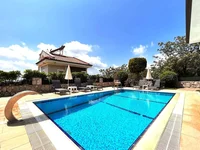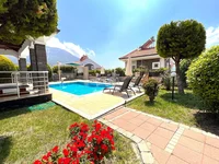 Overlooking the panoramic views of the Ovacık, the villa is built across three floors on a plot of 450 m². It features a functional layout with a private swimming pool, landscaped garden, and open parking area.