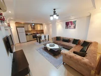 Excellent large, bright, apartment 2 + 1, 120 sqm on the 5th floor. Kitchen + lounge (American layout) + 2 bedrooms, 2 bathrooms, 2 large balconies. Apartment with furniture and appliances. The kitchen has a built-in kitchen set, the bathroom is fully equipped. The apartment is ready for settlement.