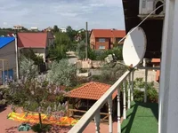№ 2816. Offered for sale house by sea in a pos. Carolina - Bugaz. The total area of 370 sq.m. Scheduled for 9 rooms. Repair completed. Equipped with furniture and household appliances. All communications. Autonomous heating. Located on a plot of 4.6 acres. In the courtyard there is a fountain, decorative trees, landscape design. Asphalt porch. Near the beach. Can be used for business