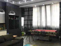The total area of 90 sq.m. Two separate rooms and a living room kitchen. Expensive design repairs completed. Equipped with Italian furniture and German household appliances. Wardrobe room.