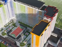 There are many green spaces in the courtyard, there are a large number of playgrounds, and sports grounds, there are also recreation areas.