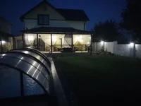 The plot of 6 acres of the correct shape is landscaped and landscaped, landscape, automatic irrigation system, indoor pool, on the terrace of barbecue, sink, garden furniture are made.