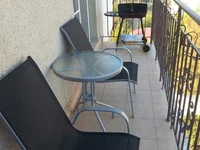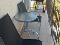 In the yard there is a place for a car, a recreation area and a playground. The yard is closed.