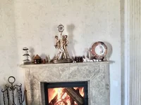 Three separate bedrooms, dressing room, kitchen-hall 30m2. Three-sided, insulated, top floor (new roof!), two full bathrooms (jacuzzi + toilet and shower + toilet), total 100m2. Working fireplace, natural marble in the interior. Individual official electric heating, heated water floors. All doors are made of natural wood.