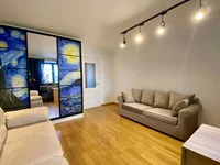Near the house there is a supermarket, store, post office, bank, market, shopping center, school, garden, playground, gym, coffee shops, bakeries, restaurant, Victory Park, sea, beaches, public transport stops in any direction of the city. The city center is 15 minutes away by car.