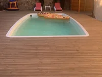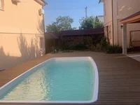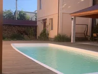 In the yard there is a gazebo with a kitchen and barbecue. There is a comfortable swimming pool. Covered canopy for parking two cars. The house is located close to the sea.