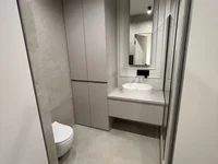 29421 Selling a one-room apartment with a large kitchen-living room in 59 Zhemchuzhene. New European-style renovation in pleasant colors, no one has lived in it yet. The apartment has a balcony and a spacious dressing room.