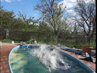 The plot has a large basement, a tiled yard, a fenced playground, a covered gazebo and a large pool with a full cleaning system. Tall beds with drip watering and fruit trees (cherry, cherry, plum, apricot, pear, quince, figs, persimmon) complement the cozy atmosphere.