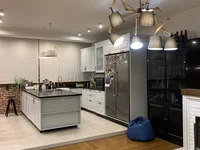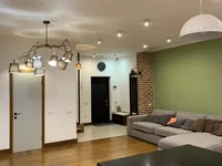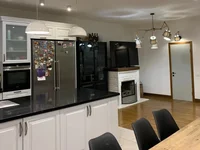 A stylish repair is made using quality materials. It is equipped with expensive furniture with appliances. Equipped a fireplace.