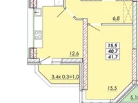 Total area of 42 sq.m. The condition from builders allows you to perform repairs to their liking and create a comfortable space.