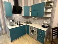 In the apartment there are furniture (coupe cabinets) and a kitchen with built-in household appliances.
