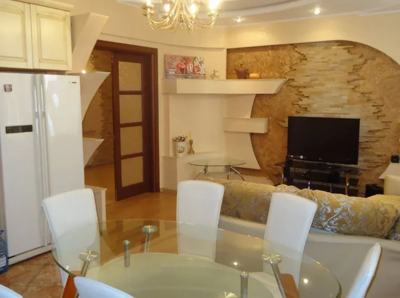 36949 Spacious 4-bedroom apartment for sale, located in the resort area of 6.5 station of the Great Fountain.4 Bedrooms 25, 25,15,16, separate rooms, kitchen-dining room 26 sq.m., 2 s/u, 2 loggias are glazed, 2 balconies are glazed. The apartment is equipped with built-in furniture, as well as household appliances and 5 air conditioners. There is access to the roof of the terrace. The territory of the house is fenced, is under security and video surveillance.