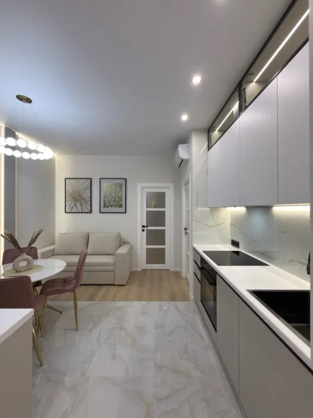 37990 New apartment for sale in 60 Pearls. Middle floor. Kitchen-living room plus two bedrooms. The apartment has a loggia. Direct view of the racetrack. Completely equipped with furniture and household appliances. Everything new!