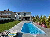 The house is 2-storey aerated concrete. S=265 sq.m. Garage h-3, area 30 sq.m.