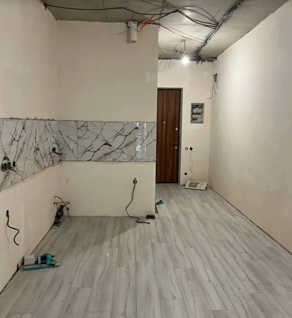 The apartment is in a state of builders, which allows the new owner to implement his own design and create a comfortable space to his liking. The studio layout makes the apartment bright and functional, with the possibility of convenient zoning.
