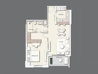 Wilton Terraces — 12-story tower in Sobha Hartland. This unit is 1 bedroom + 2 bathrooms with a view of a community with a partial view of the city center from the balcony. There is a bathroom in the bedroom.