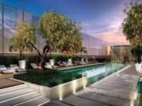 The residence features a panoramic swimming pool, a gym, gardens, a lounge area, shops and cafes.