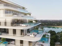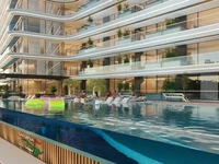 The residence features a roof-top garden, a fitness center, an outdoor cinema, a kids' playground, a swimming pool, a barbecue area, a mini golf course.