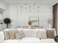 Apartment after upgrade. Completely replaced flooring, added lighting, customized furniture. The kitchen is fitted with built-in appliances (the developer has provided a freestanding one). Curtains are electrically operated.