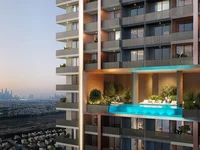 The project boasts a stunning 23-floor design with a modern, sophisticated exterior featuring sleek glass facades, elegant lighting, and lushly landscaped surroundings that create a serene and inviting atmosphere. The building includes separate residential and commercial lobbies, reflecting luxury and functionality. Amenities are abundant, offering a lagoon-style pool with a sandy deck, a kids' pool, a sunken lounge, and an outdoor CrossFit area for active lifestyles. The rooftop features a breathtaking infinity pool and a sky leisure deck with panoramic views. Residents enjoy a fully equipped gym, a yoga and meditation area, steam and sauna rooms, and a clubhouse for relaxation and wellness. Entertainment options include a cinema, a party hall, a padel court, table tennis facilities, and outdoor lounges. For families, there is a kids' playroom and outdoor play area. Additional conveniences include an outdoor BBQ area, smart home systems for automation, EV parking, bicycle parking, and an emphasis on sustainable and modern living. This project offers an unmatched blend of luxury, comfort, and functionality.