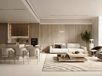 Apartments and duplexes with decoration in a warm neutral palette and accents of the color of the sea wave