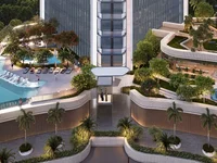 The project rises as a 70-floor architectural statement within a prime residential community, blending elegance with modern sophistication. Its iconic triangular structure offers 270-degree panoramic views, including Downtown Dubai, Ras Al Khor Sanctuary, and surrounding lagoons. The minimalist yet commanding exterior features a sculpted silhouette reflecting purpose and poise. A triple-height lobby welcomes residents with dedicated concierge and valet services, refined café seating, and high-end finishes setting the tone for understated luxury. The amenity-rich lifestyle includes a multi-tiered podium with rooftop wellness club, zen garden, yoga terrace, meditation spaces, and an immersive three-in-one pool concept (infinity edge, sunbed, and beach-style pools). Indoor facilities include a cinema, executive lounge, cryotherapy spa, fitness studios, co-working and library spaces, music and karaoke studios, and separate play zones for kids and toddlers. Smart home systems, refined materials, and integrated design ensure seamless flow and deliver comfort, control, and quiet distinction.