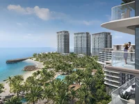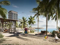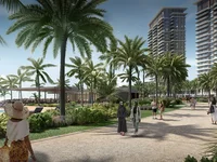 The project offers a sophisticated living experience with a mix of studio, 1-bedroom, 2-bedroom, and 3-bedroom apartments, totaling 3,302 units, each crafted to maximize comfort and modern style. Interiors feature high-quality finishes, including fitted wardrobes and fully equipped kitchens with premium white goods. The design emphasizes open, light-filled spaces, utilizing floor-to-ceiling windows that invite scenic views of the surrounding island and seascape. Neutral color palettes, luxurious stone countertops, and timber-look joinery create an elegant and serene atmosphere throughout each unit, while accent glass and modern lighting add a touch of refinement. Bathrooms are designed with premium fixtures, offering a spa-like experience at home, and living areas blend seamlessly into private balconies, creating a true indoor-outdoor lifestyle tailored for both relaxation and upscale living.