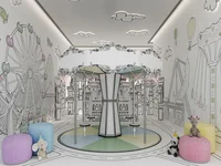 Gated pool deck with separate adult and children’s pools featuring multi-sensory water elements
