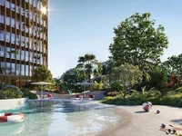The architectural design of the project is a masterclass in organic fluidity, featuring a double-layer façade that blends bronzed aluminum fins for solar protection with a sinuous, integrated green spine that breathes life into the structure. Beyond the private residences, the project offers a constellation of refined amenities designed to enrich daily life and foster community. Residents can enjoy a ground-level terraced podium that welcomes the forest into the building’s core, a refreshing pool framed by greenery, and a rooftop haven featuring an exclusive bar with sweeping views. For wellness and productivity, it includes a state-of-the-art indoor gym, a private spa with saunas and steam baths, and a sea-facing co-working space designed for creative flow. With a dedicated kids’ area and multi-functional pavilions for spontaneous connection, the project is a stage for life to unfold in a world where luxury breathes and nature leads.